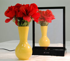 Made from a special liquid crystal material, the switchable mirrors have an electrically variable transmittance or reflectance. By altering the liquid crystal material formulation, the mirrors can be fabricated to operate from the visible to midwave IR. Their reflection bandwidth can also be arbitrarily tailored to vary from a few nanometers to a few micrometers. The mirrors are a semi-solid state thin film device, and can be rapidly switched between the pure reflection, half-reflection and total transparent states through a push button. The mirrors offer customers a switchable reflective shutter for vast applications in photonics apparatus and instruments. Examples of the possible applications include variable apertures and zoon optics in imagers and displays. A recent ABC News report shows an automobile rear view video mirror made with our switchable mirror. more>>